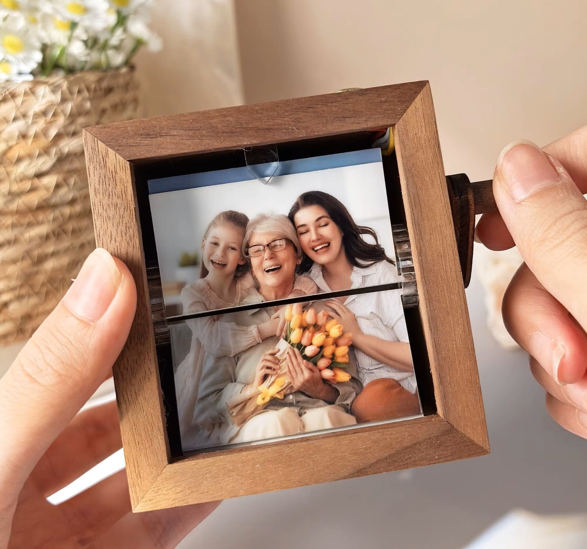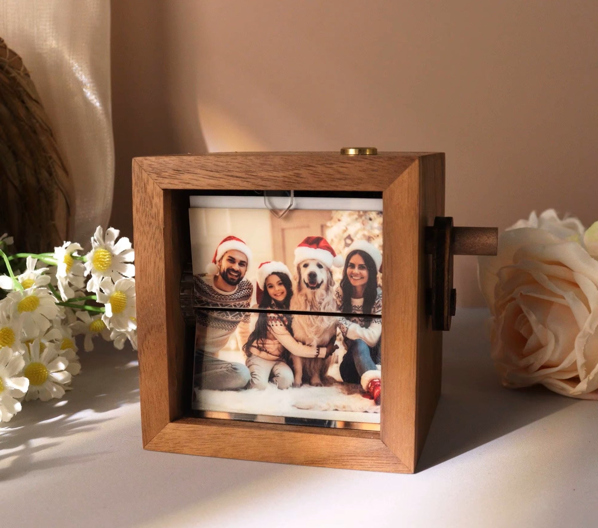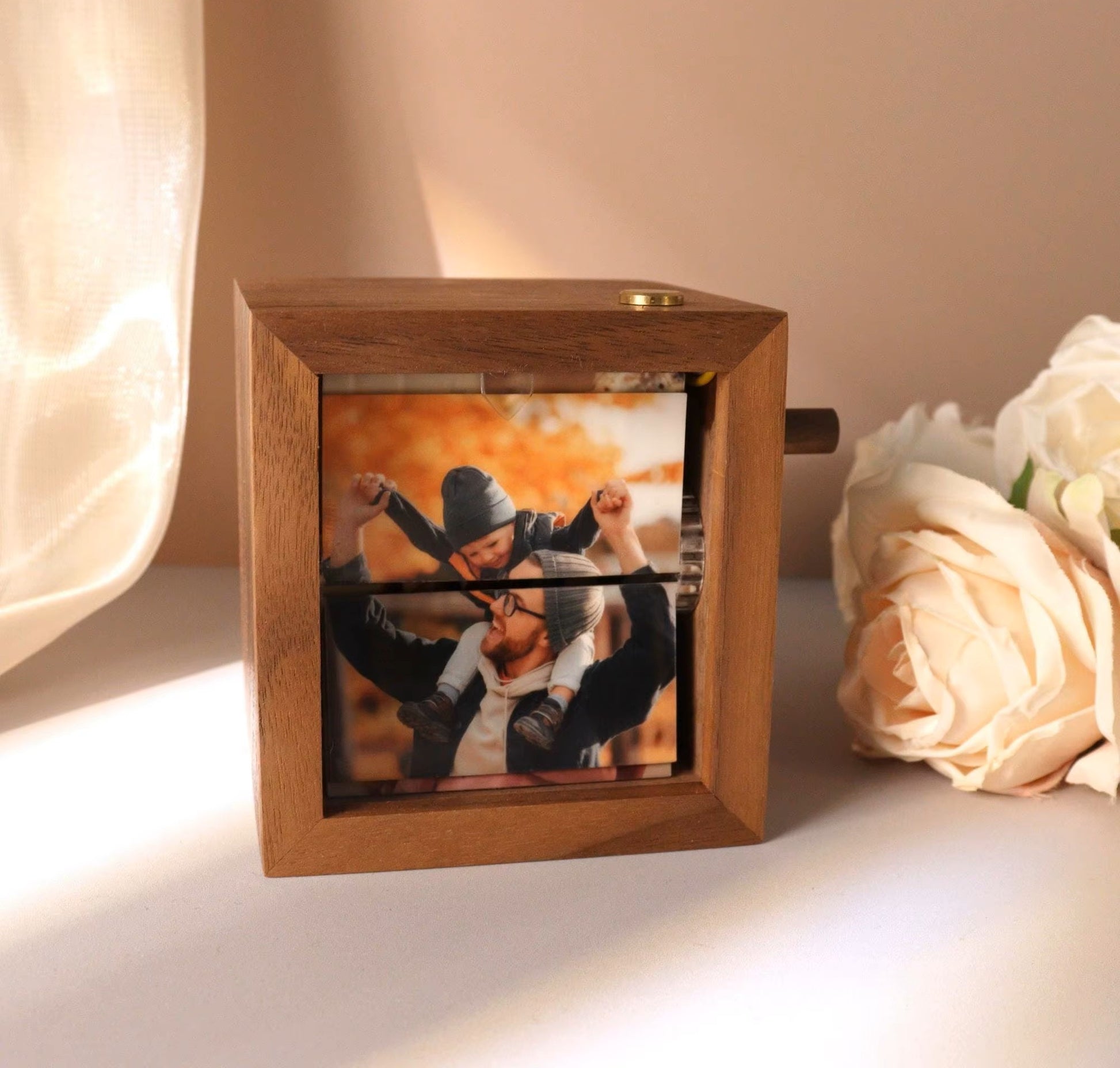 Sorpréndete con esta increíble máquina de animación personalizada, donde tus fotos cobran vida al girar la manivela. Fabricada en elegante madera, combina tecnología moderna con un encanto artesanal que la convierte en una pieza única para regalar o decorar tu hogar.